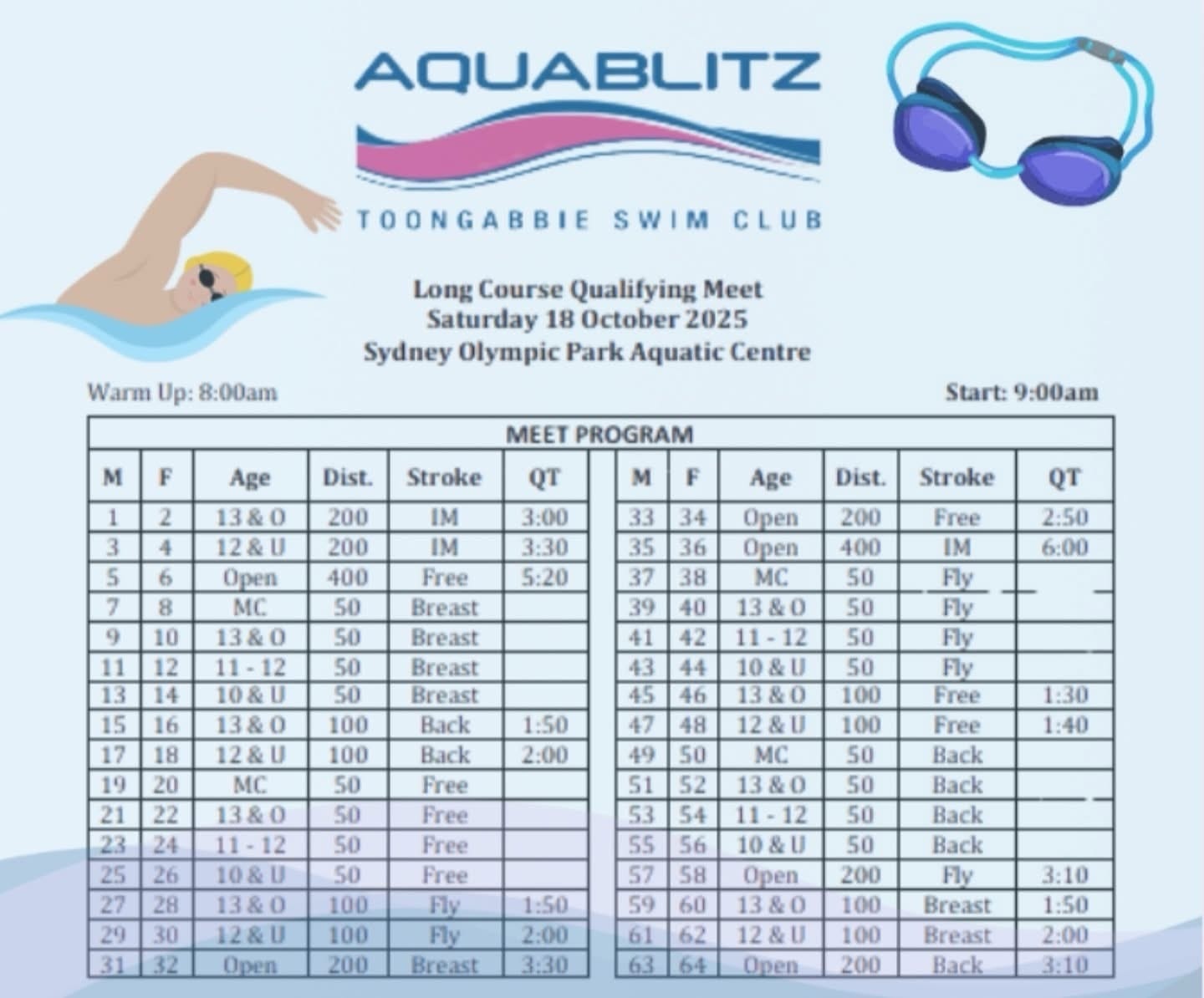 Squad News Stay updated with the latest squad news and in-depth reviews of swim competition results. Upcoming Events Aquablitz Carnival, Sunday 28th July 2024. Two meets running simultaneously in two pools. Entries close Friday 19th July. https://metrosw.org.au/msw-events/2025-aquablitz-toongabbie-short-course-meet/ NewslettersSquad News – June to August 2025Squad News – Metro South West SC Championship